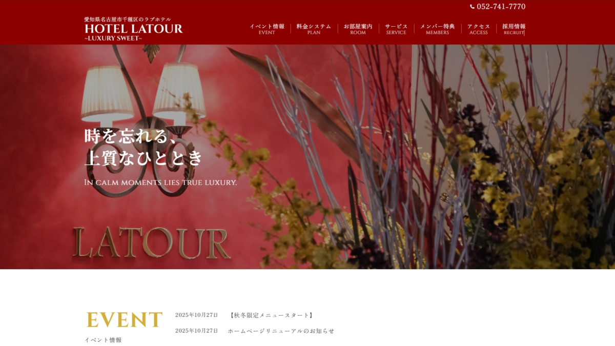サービス・販売 ホテルラトゥール 様 ホームページ制作 clientホテルラトゥールRelease2025年URLhttps://www.latour.jp/Type#コーポレートサイト#スタンダードプランPurpose#問合せ増加#来店数増加